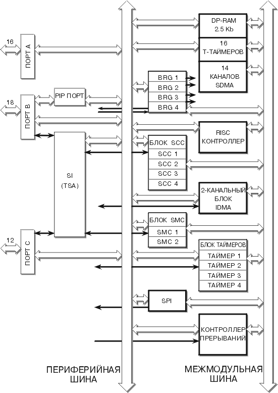 Контроллер MC68360 и его модификации MC68EN360, MC68MH360 имеют модульную структуру