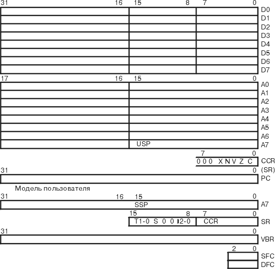 Регистровая модель процессора CPU32+ приведена на рис.2. Модель пользователя