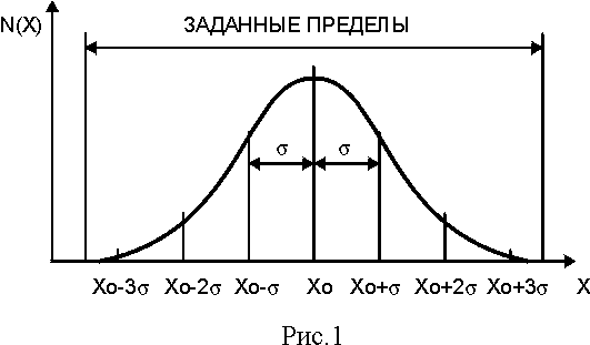 Как известно, компоненты, производимые даже в ходе одного и того же технологического процесса, имеют некоторый разброс параметров. При этом изделия из одной и той же партии, имеющие разные конкретные значения параметра, встречаются с разной частотой. При массовом производстве частота появления компонентов с определенным значением параметра может быть приближенно описана нормальным распределением Гаусса, как показано на рис.1. По оси абсцисс откладываются значения рассматриваемого параметра X, а по оси ординат - количества изделий N(X), имеющих одинаковое значение параметра X. Здесь Xo - среднее значение параметра, а s - стандартное отклонение от среднего значения. Изделия, у которых значение параметра находится вне заданных пределов, считаются браком.