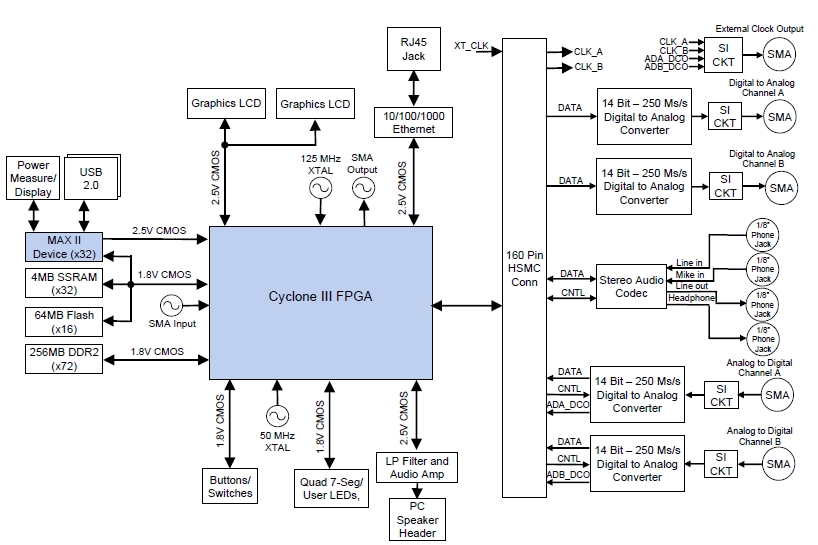 Внутренняя архитектура отладочного комплекта DSP Development Kit, Cyclone III Edition |